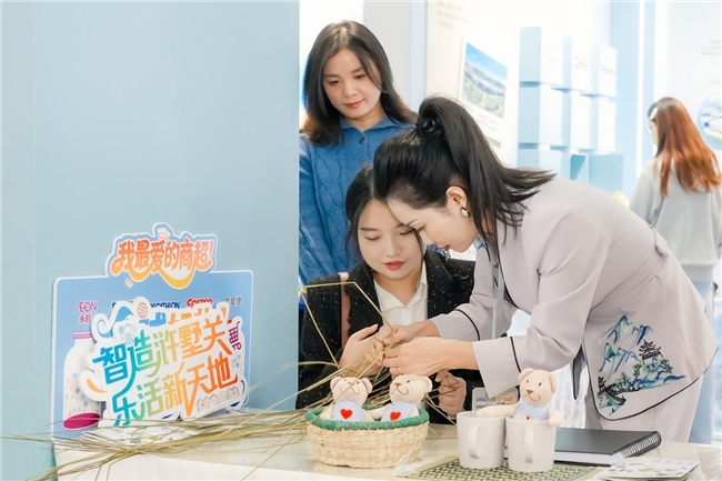 转身来到山水科技展柜,画风瞬间时尚感拉满!柜内的手工旗袍花扣、草席包等文创产品精致典雅,无火香薰散发着若隐若现的清雅气息,有趣的可米酷冰淇淋模型让人看了就想咬一口!最绝的是,现场扫码就能直接下单,一口气把浒墅关的“黑科技”好物都带回家!